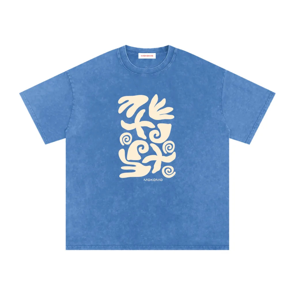 A retro-inspired tee featuring a hand-drawn coral graphic in soft blue tones.