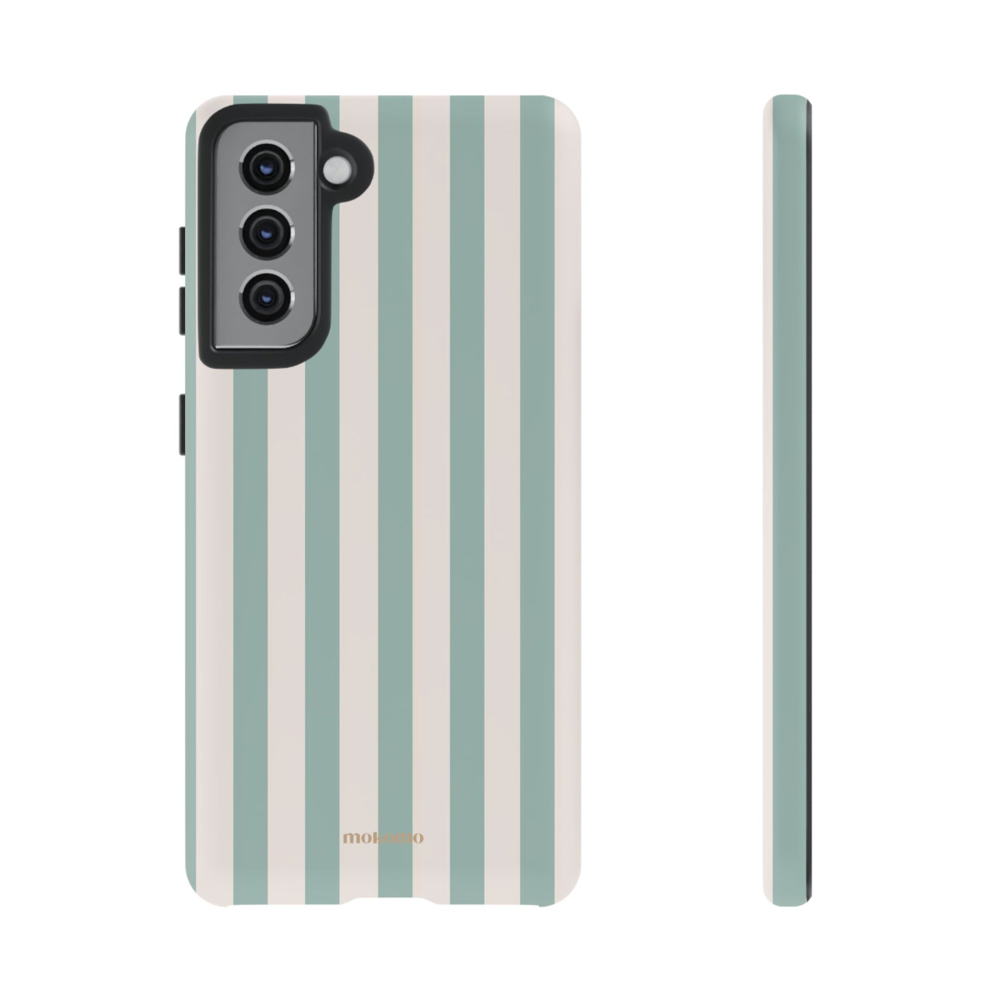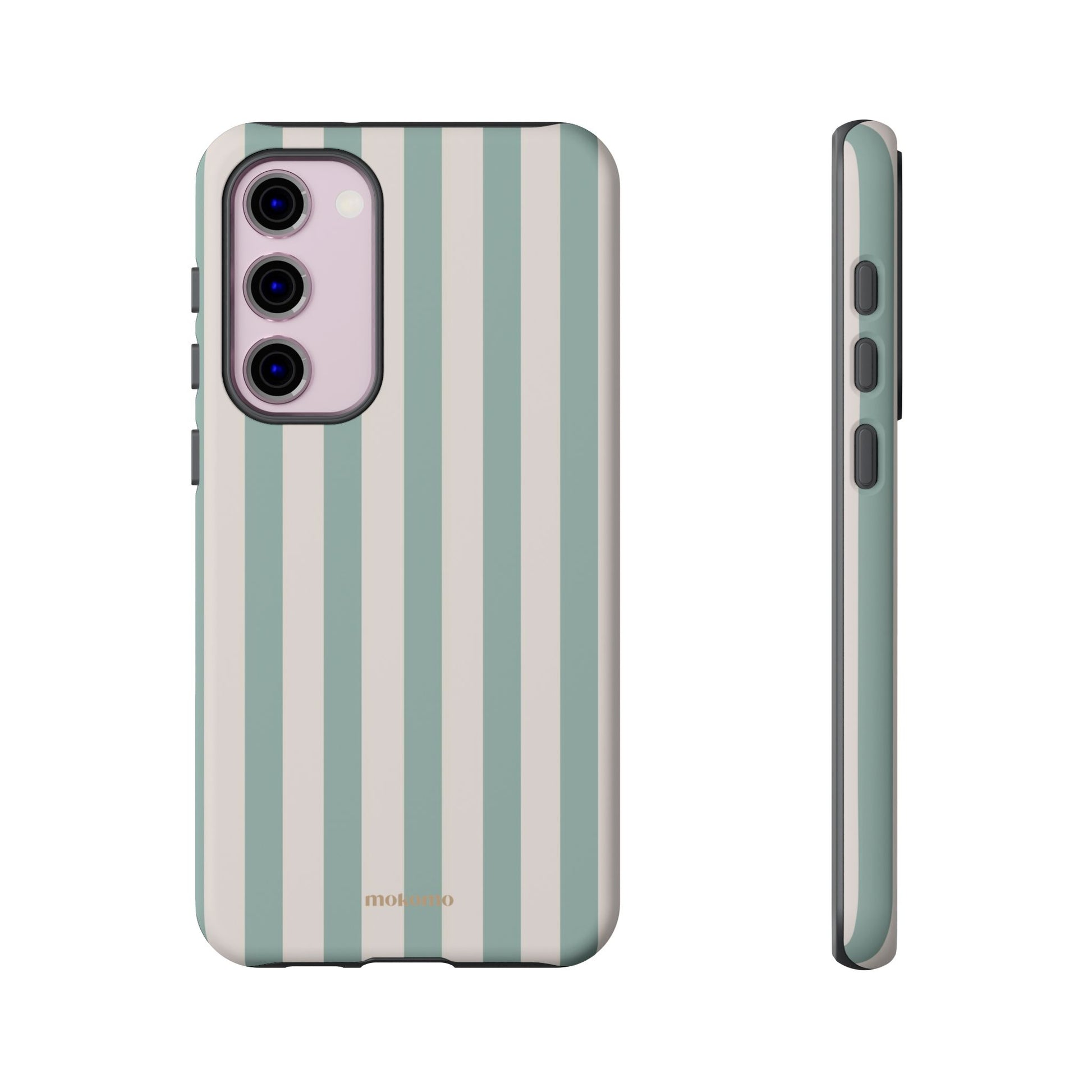 Classic stripes bring coastal minimalism, offering an easy and fun vibe to match your style. Inspired by the ocean, these pastel blue tones bring a boho vibe to your phone case.