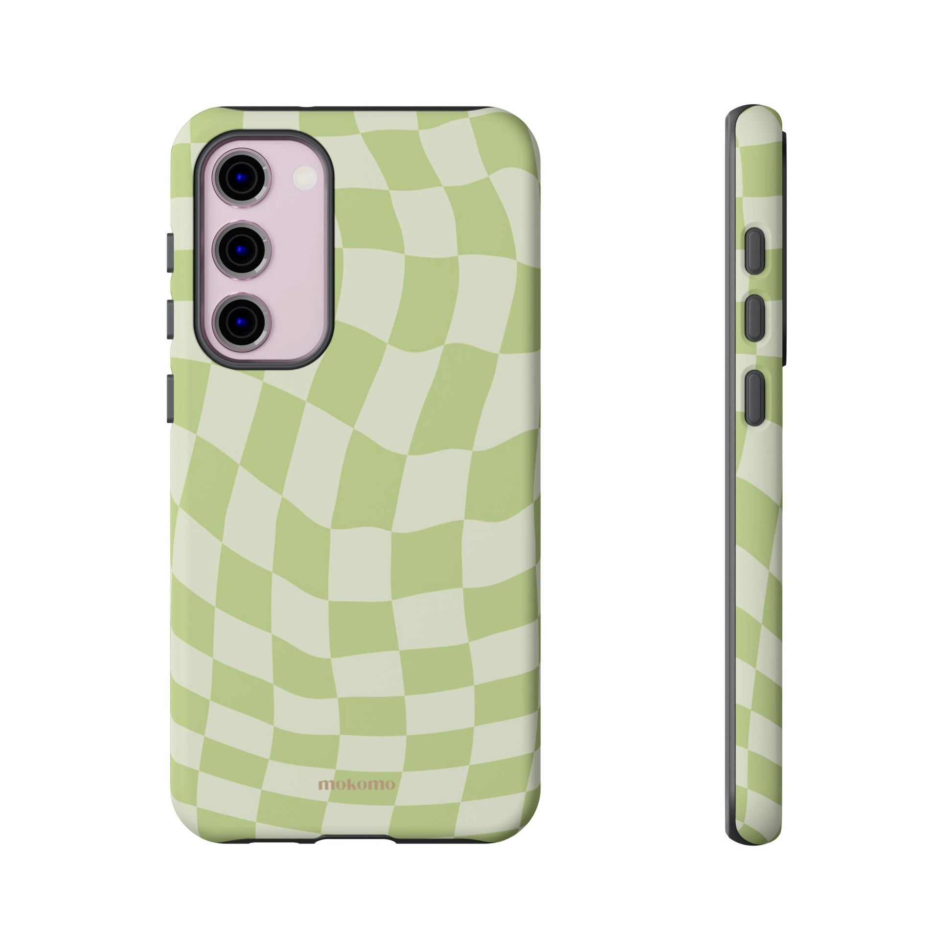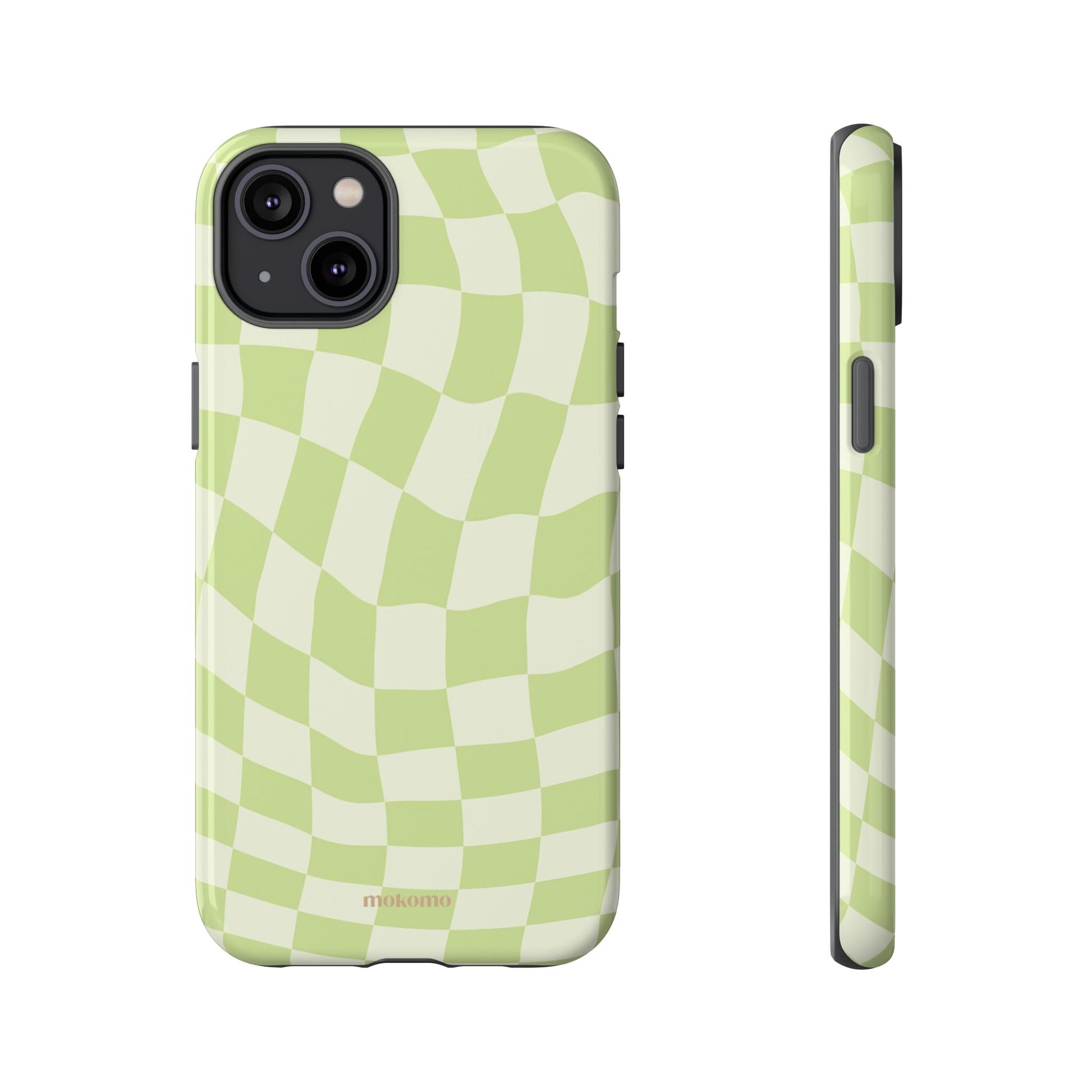 Introducing wonky checks with a cool '90s vibe to elevate your phone style game, adding a fun and trendy touch.
