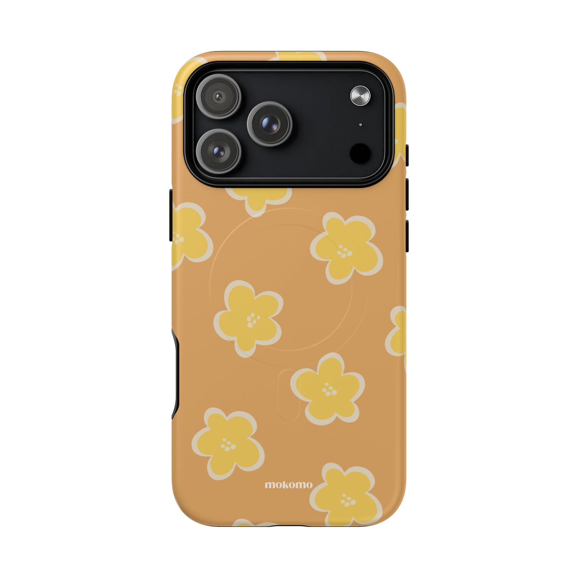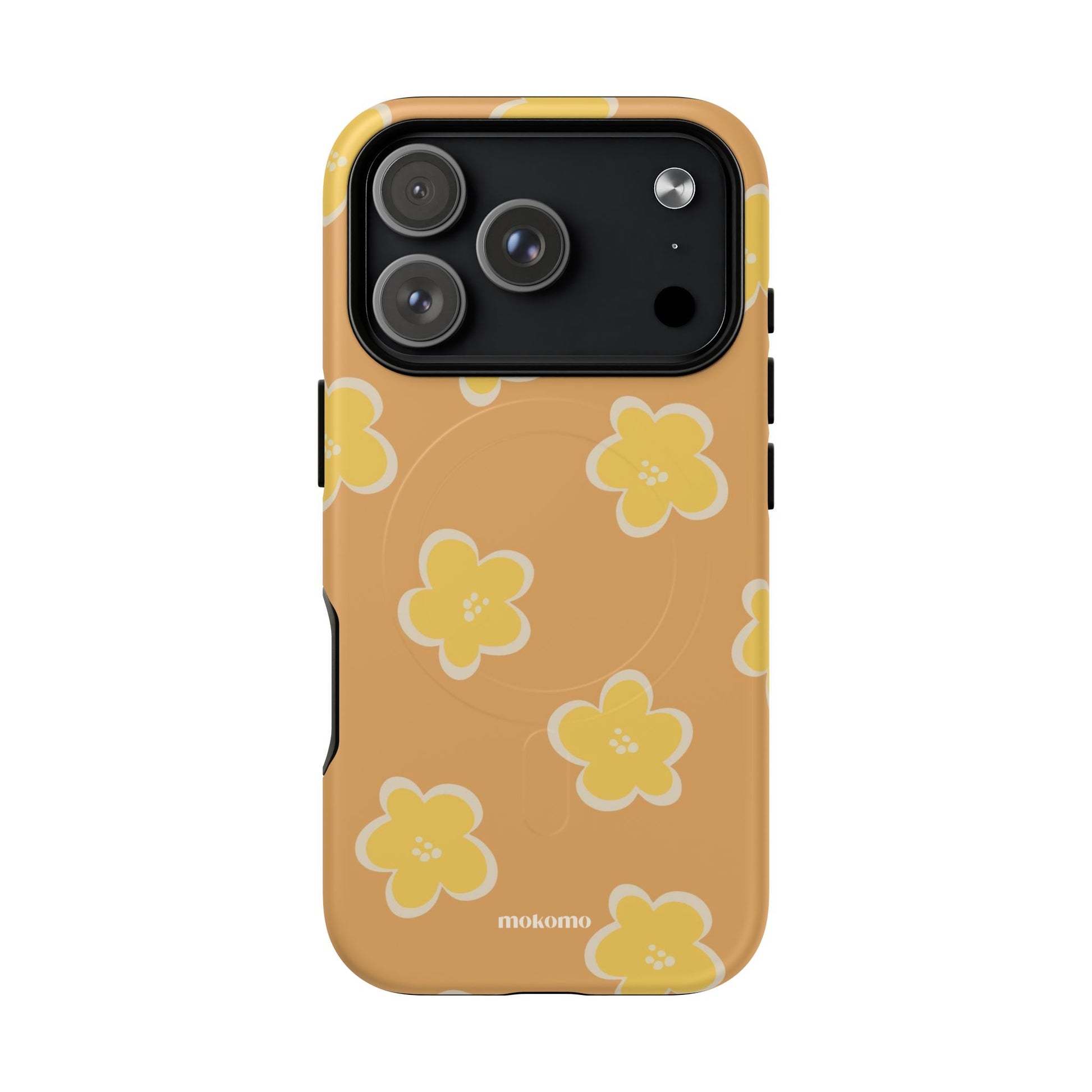 This phone case features earthy yellow tones, with a cute hand-drawn flower finish. Perfect for those who love a subtle, artistic style with a touch of nature.