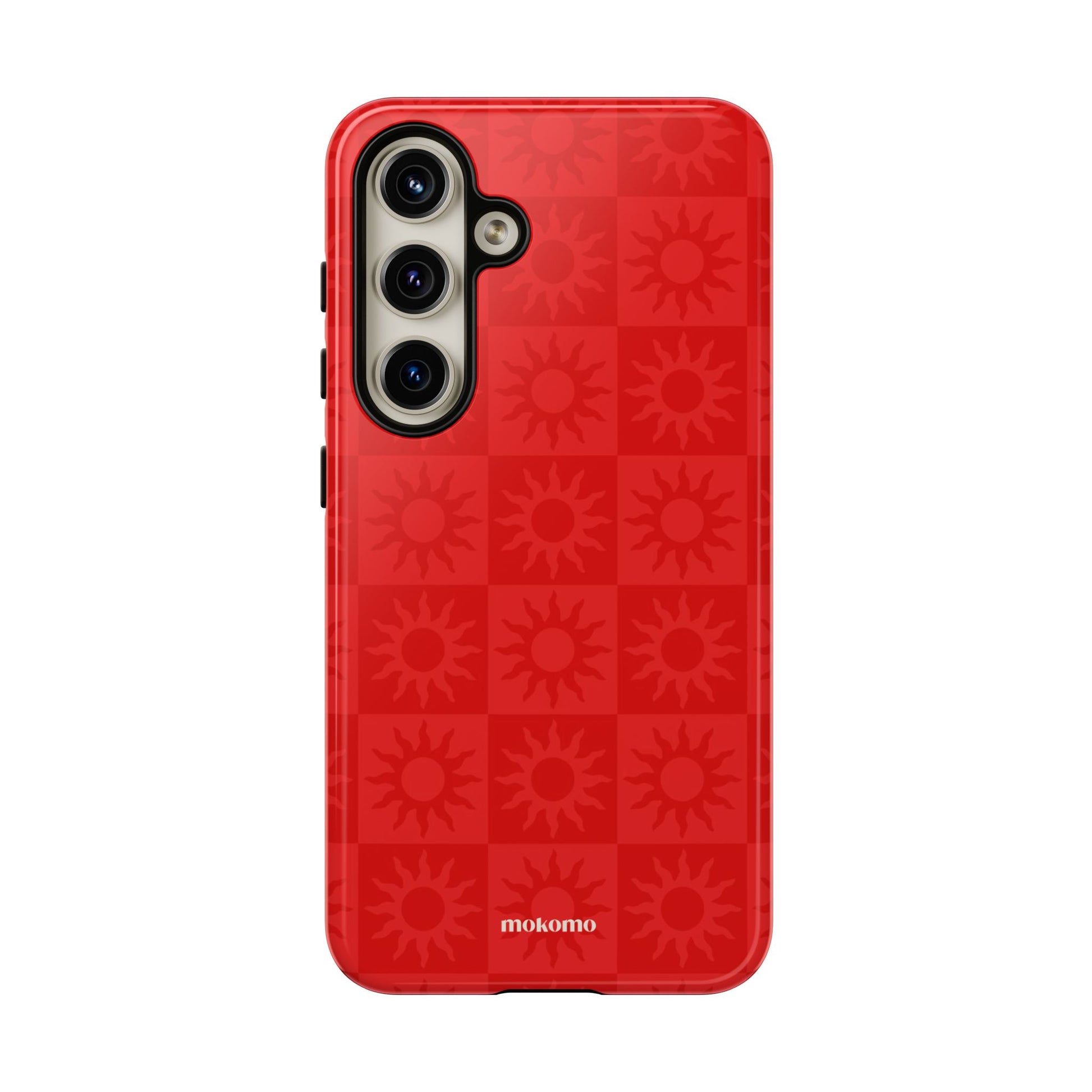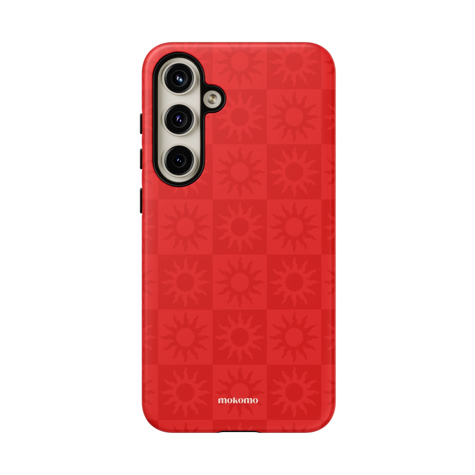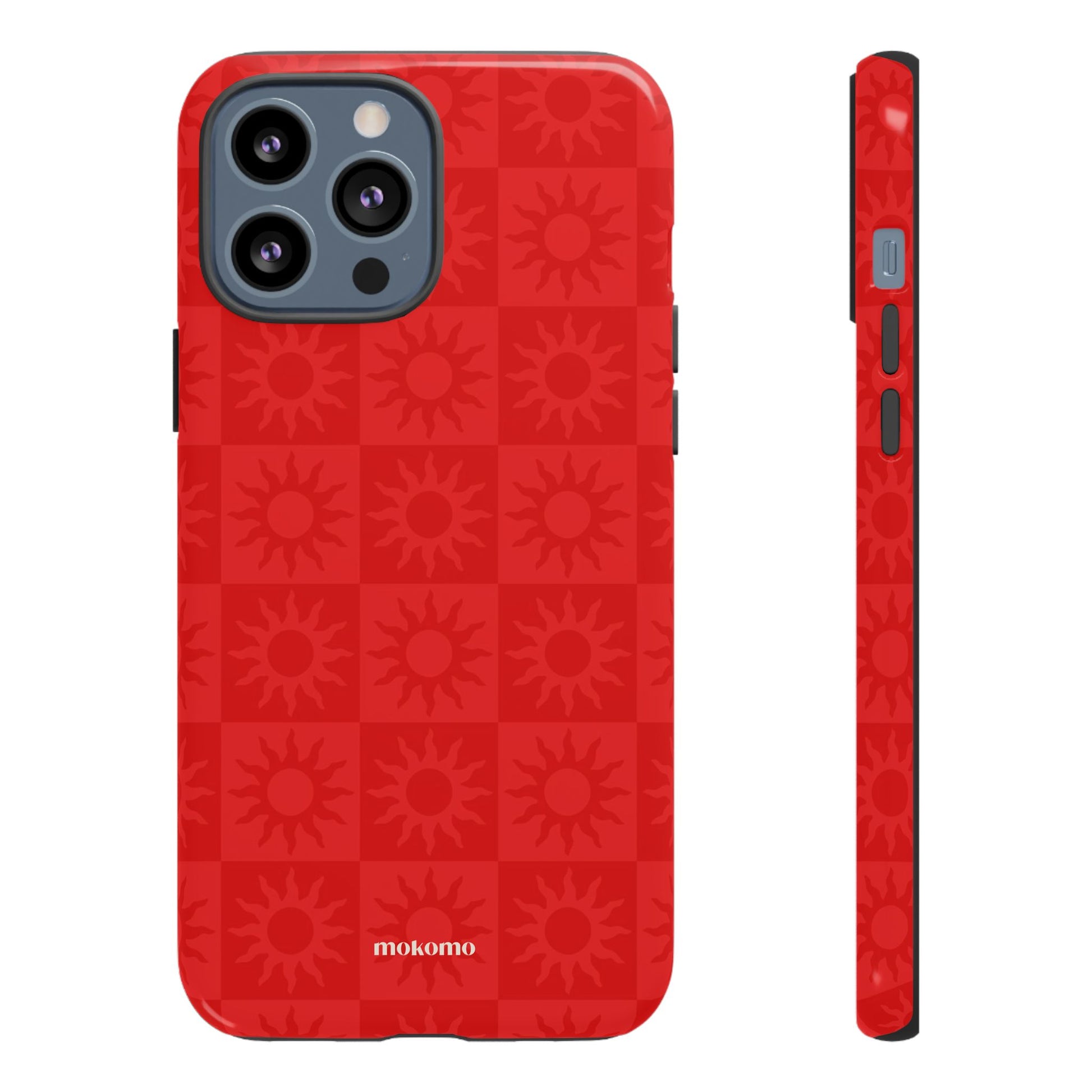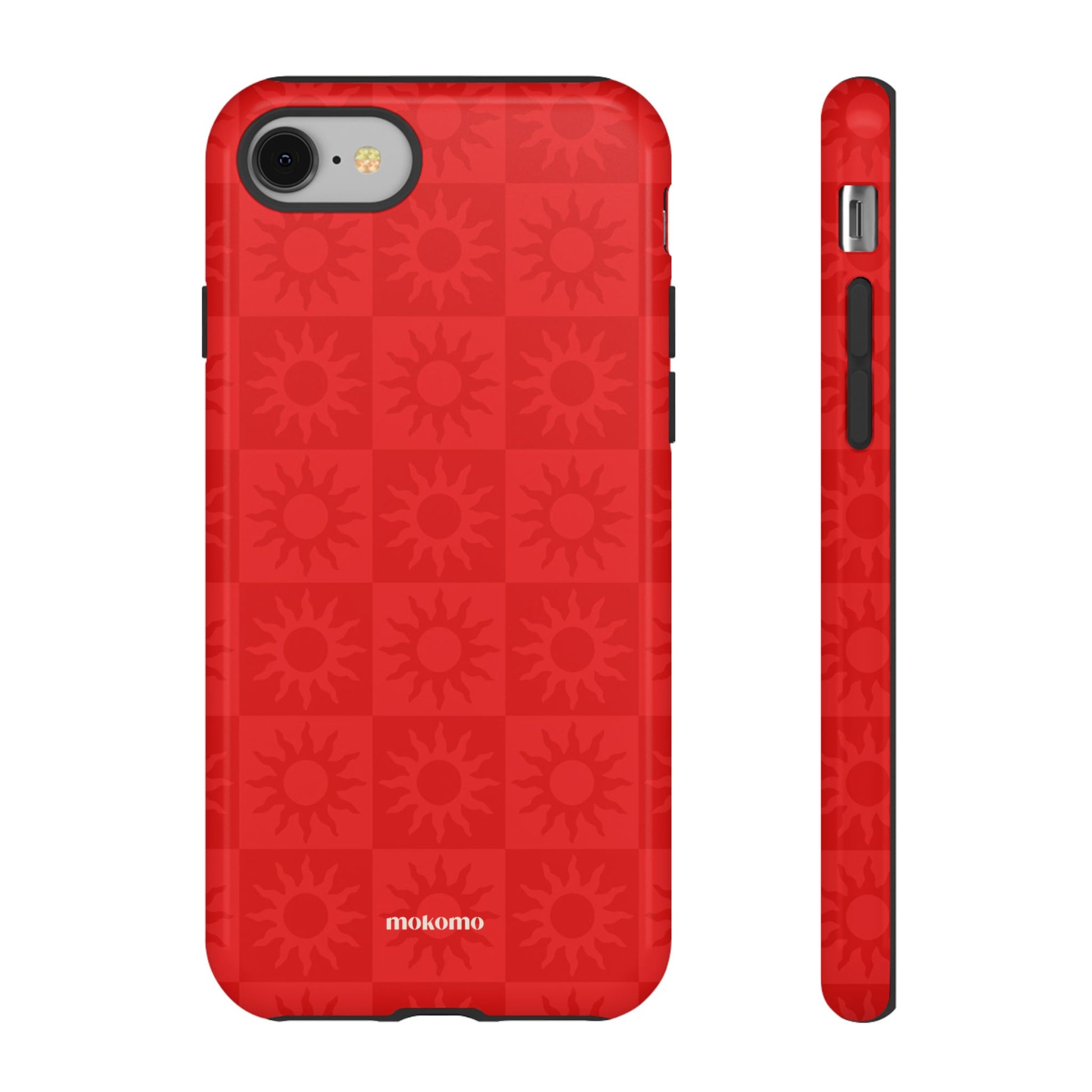 This bold checkered sun pattern in hot red adds a vibrant energy to your phone. Designed to stand out, this is the perfect way to brighten any style
