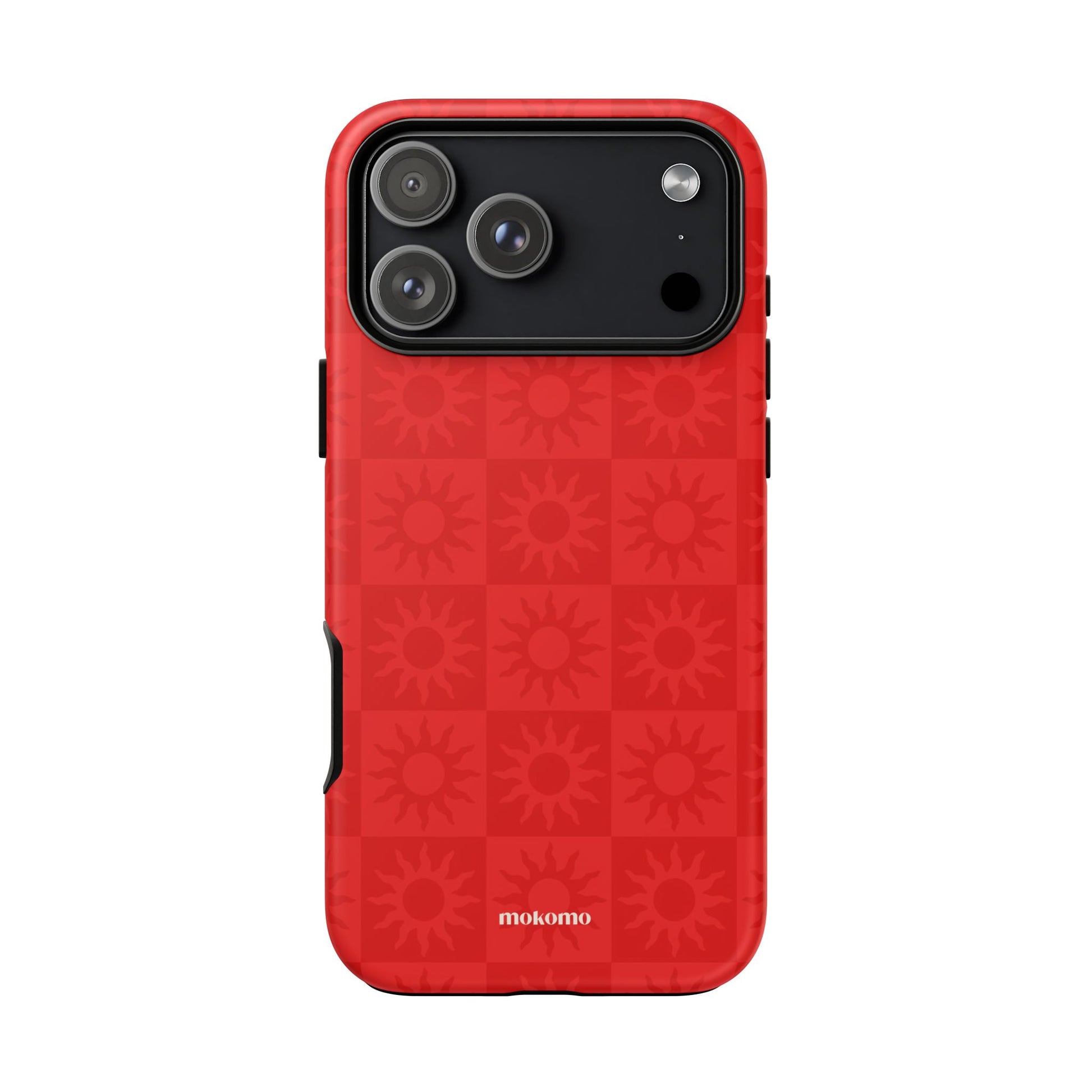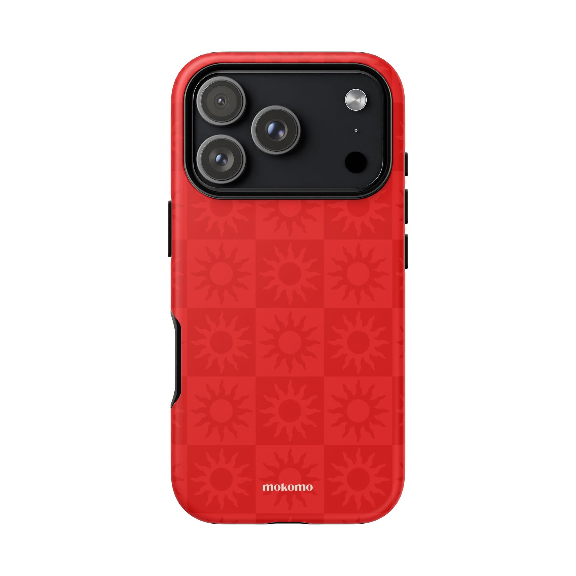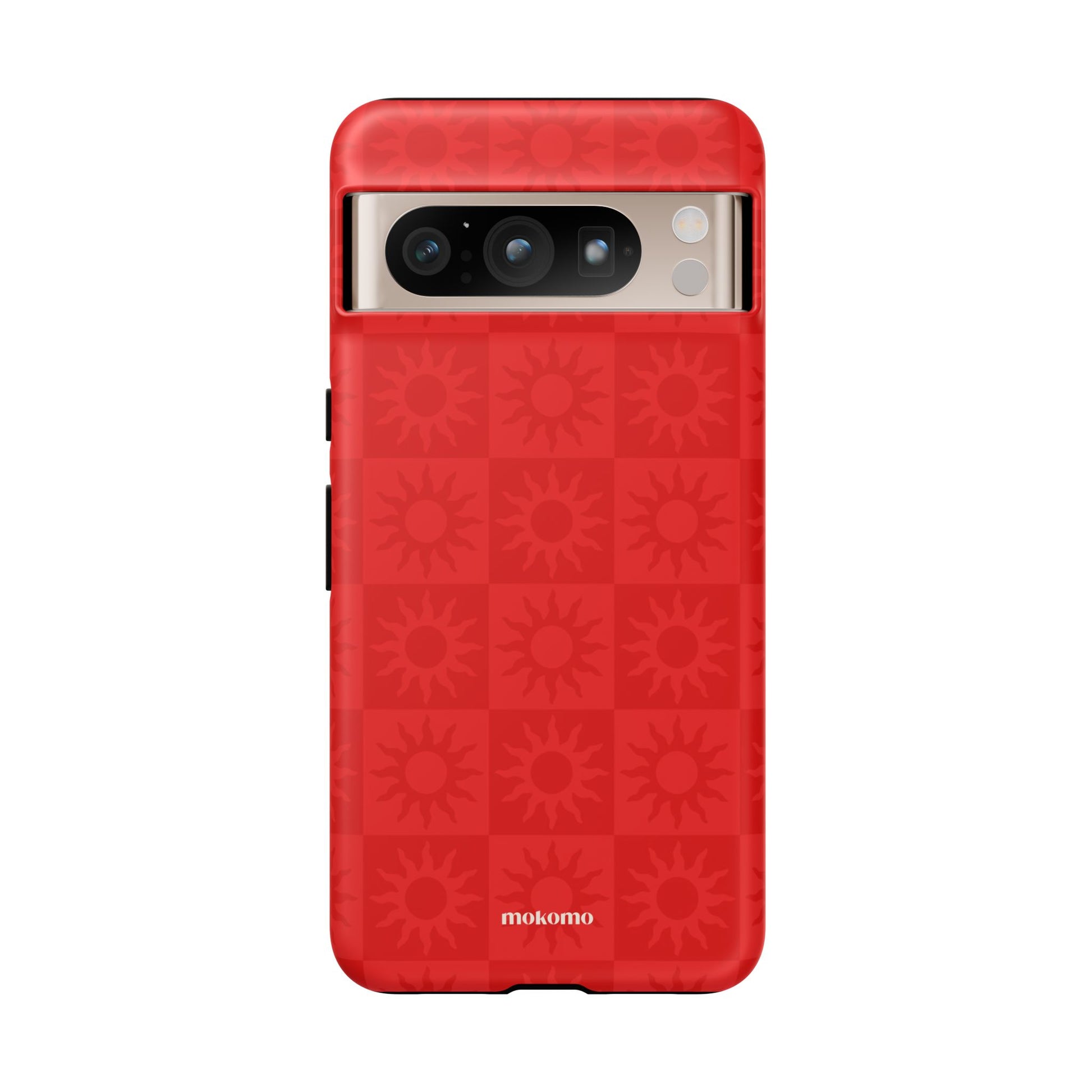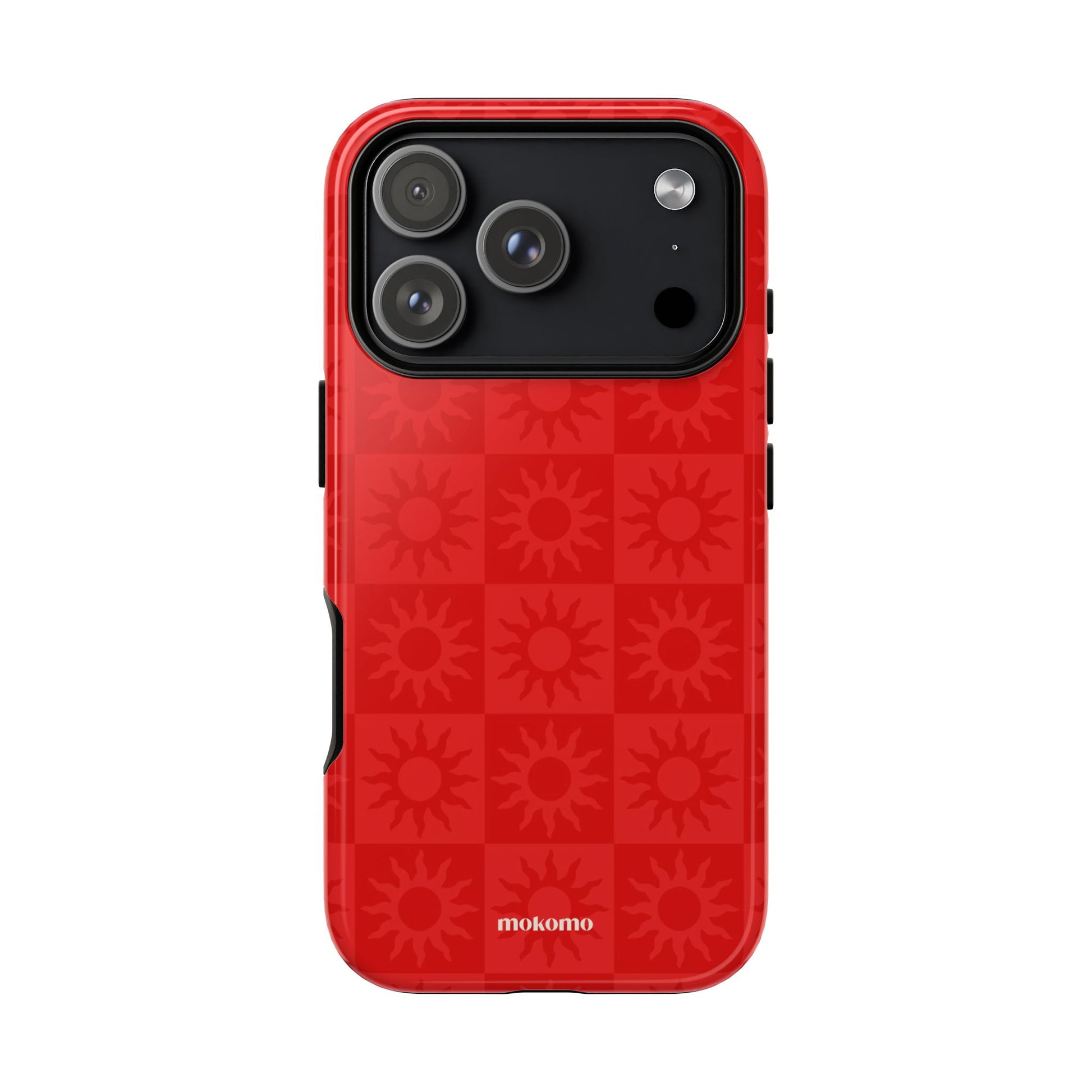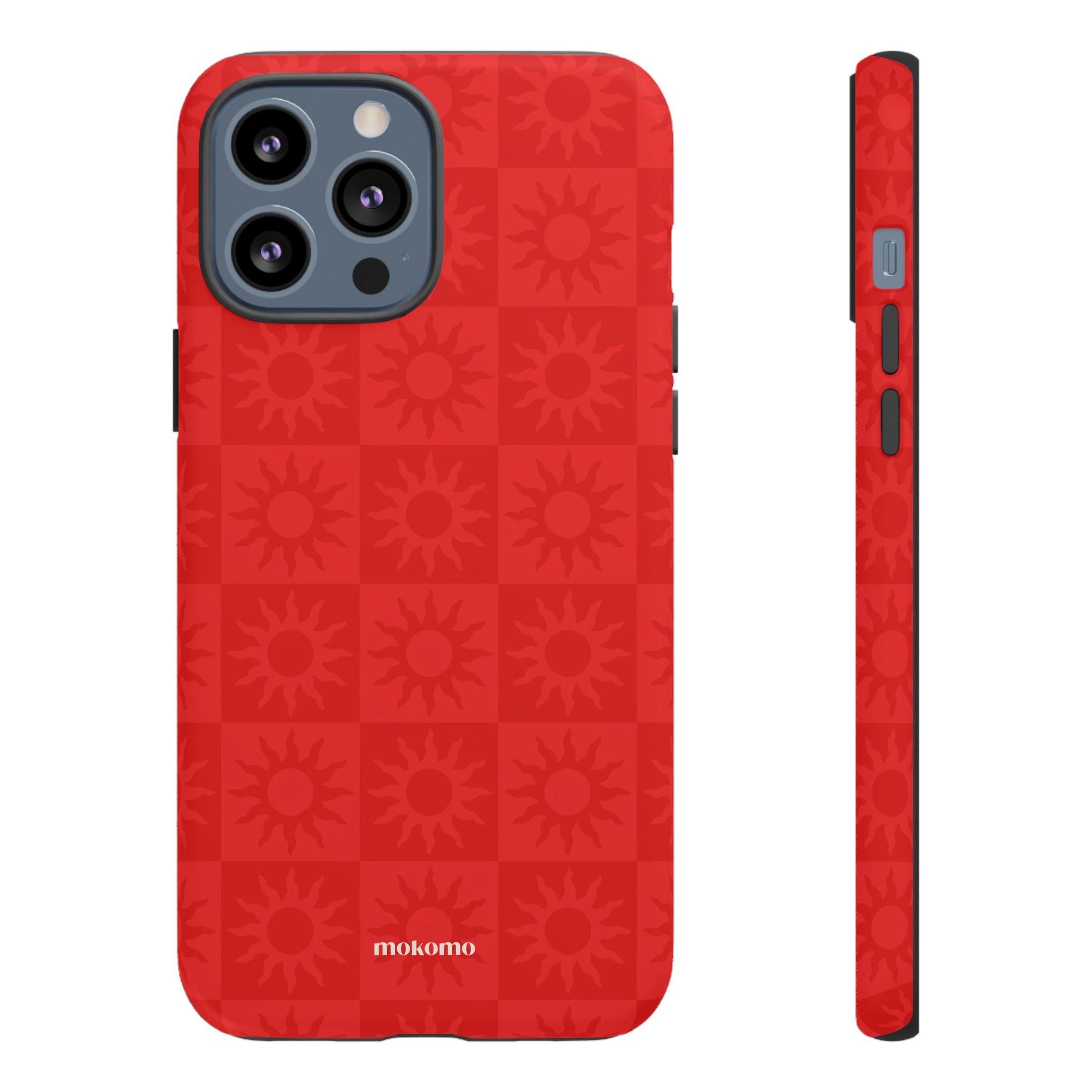 This bold checkered sun pattern in hot red adds a vibrant energy to your phone. Designed to stand out, this is the perfect way to brighten any style