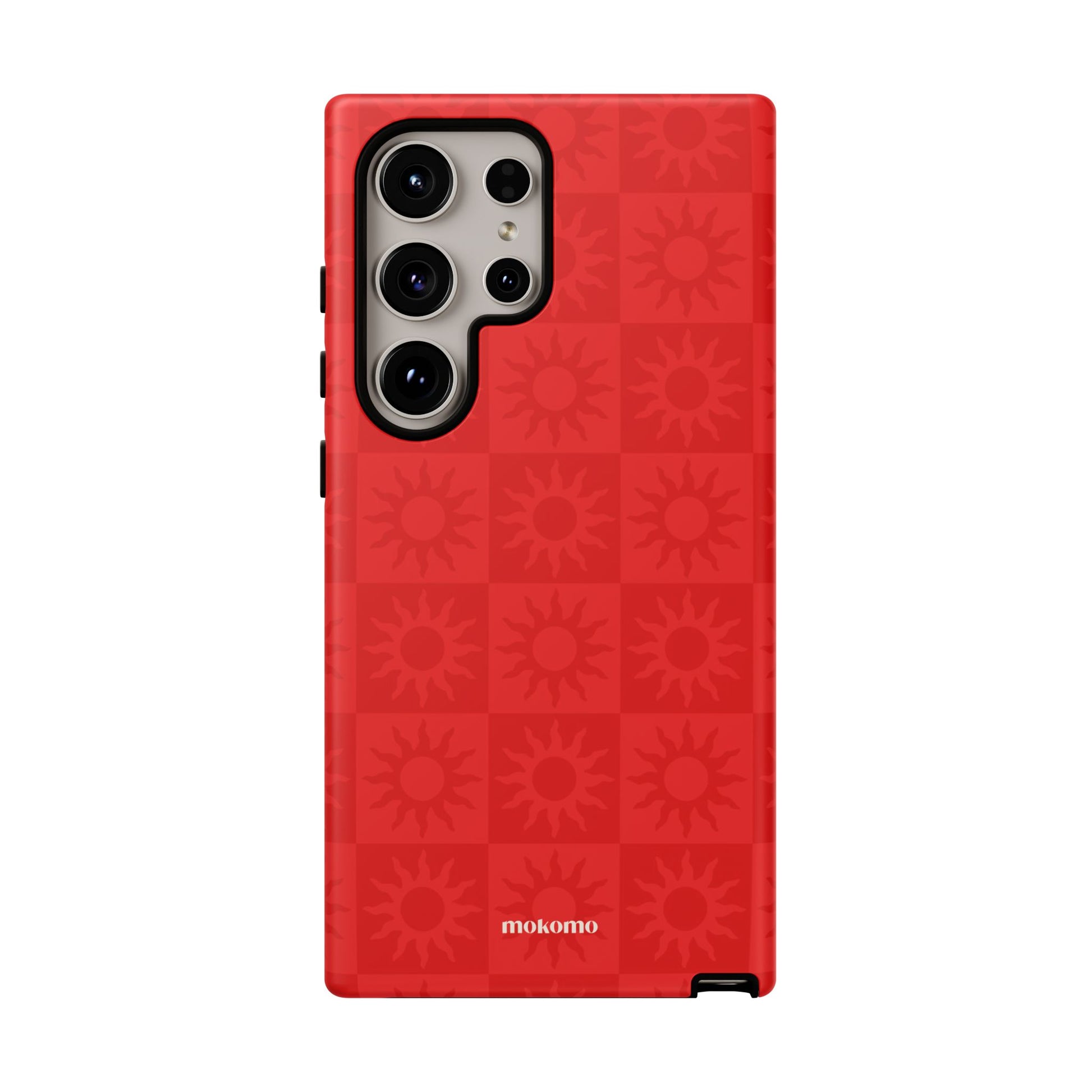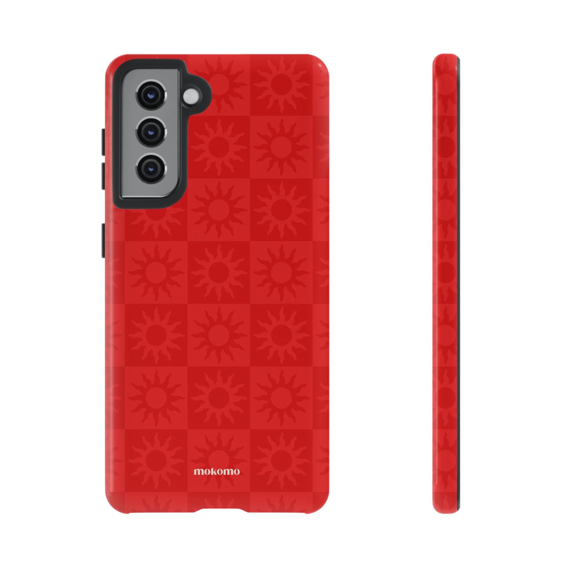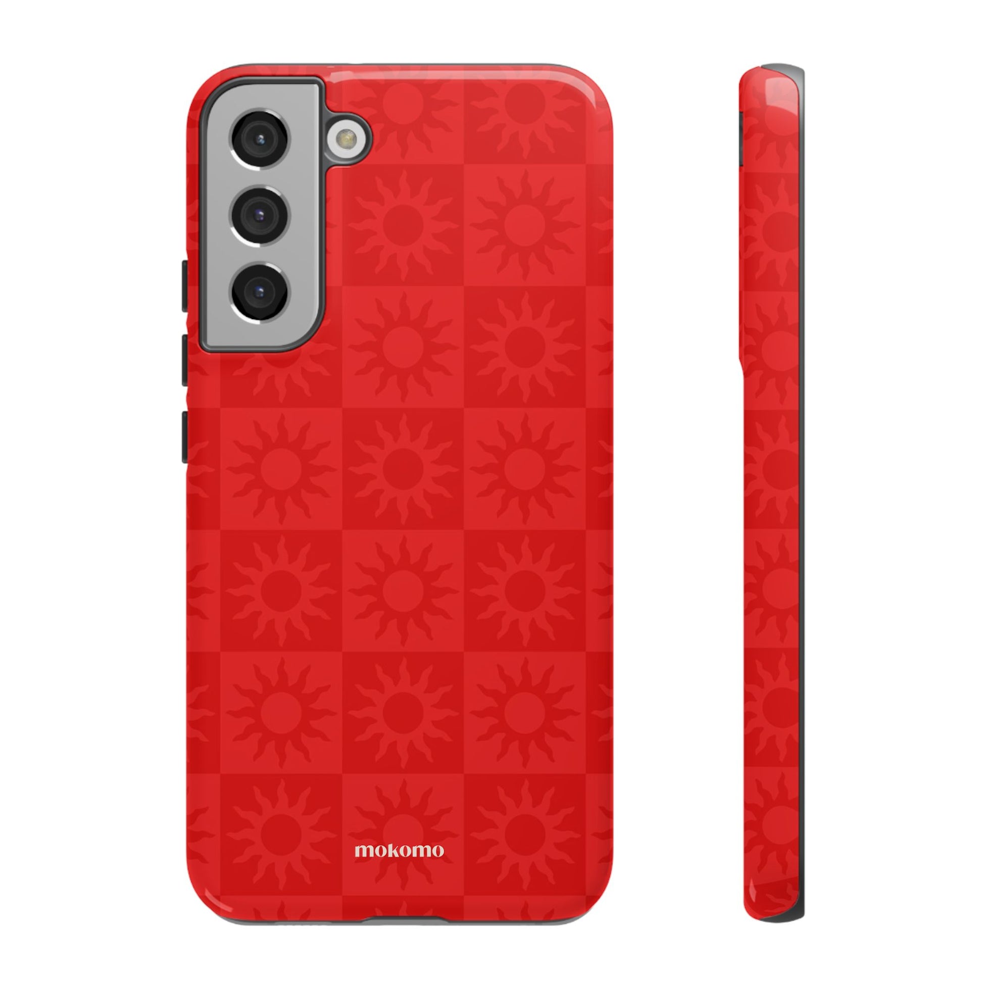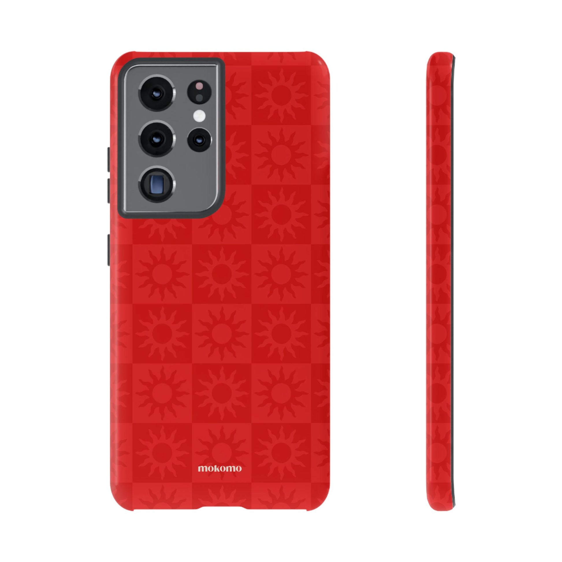 This bold checkered sun pattern in hot red adds a vibrant energy to your phone. Designed to stand out, this is the perfect way to brighten any style
