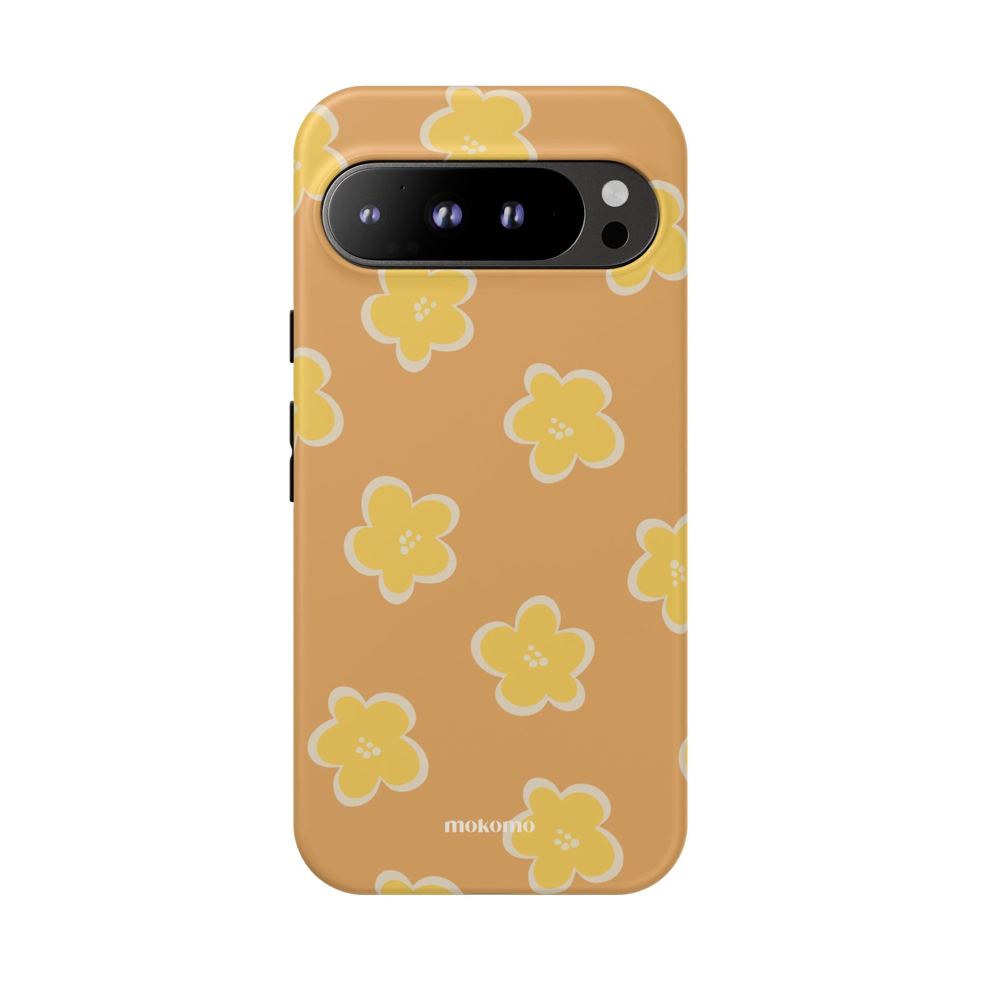 This phone case features earthy mustard and soft yellow tones, with a cute hand-drawn flower finish. Perfect for those who love a subtle, artistic style with a touch of nature.